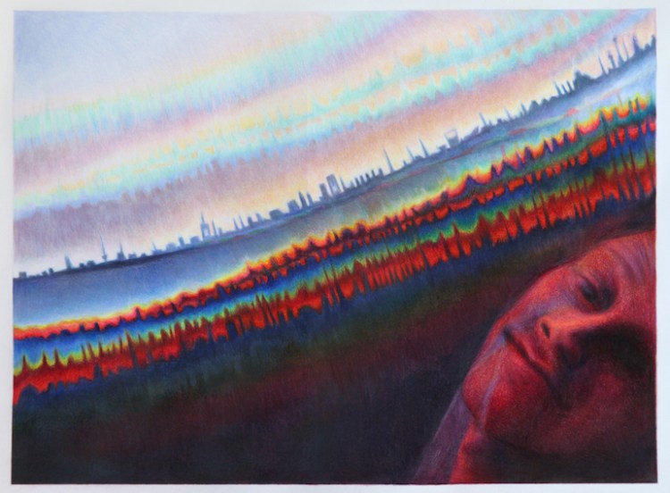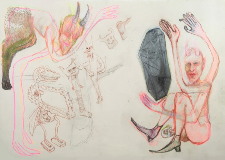 crocodile and figures, 2020, graphite on paper, 30 x 40 cmsciencefiction ii, 2017, metallic coloured pencil, metallic wax crayon on paper, 165 x 150 cmdark matter, 2015, coloured pencil on paper, 50 x 38 cmschöneberg, 2015, coloured pencil on paper, 125 x 95 cmthe phonecall, 2019, coloured pencil on paper, 133 x 101 cmselbstporträt mit selbstporträt mit skelett, 2017, coloured & metallic pencil, spray paint on paper, 110 x 95 cmtollund man, rizpa & the globs, 2018, coloured & metalic pencil & spray paint on paper, 120 x 125 cmselbstporträt, 2014, coloured pencil on paper, 150 x 130 cmthe residents, 2019, coloured pencil on paper, 105 x 95 cmwooden hand, 2018, coloured pencil on paper, 25 x 25 cmthree women, 2018, coloured & metallic pencil, spray paint on paper, 40 x 30 cmsad onion, 2015, coloured pencil on paper, 20 x 20 cmtollund man, 2017, coloured pencil on paper, 25 x 20 cmdon van vliet, 2017, coloured pencil on paper, 25 x 25 cmhandle with care, 2019, coloured pencil on paper, 22 x 25 cmimagined evening sky, 2018, coloured pencil on paper 25 x 28 cmhappy nuts, 2015, coloured pencil on paper, 25 x 25 cmjoe, 2015, coloured pencil on paper, 70 x 50 cmfemale nude, 2018, coloured & metallic pencil on paper, 22 x 25 cm