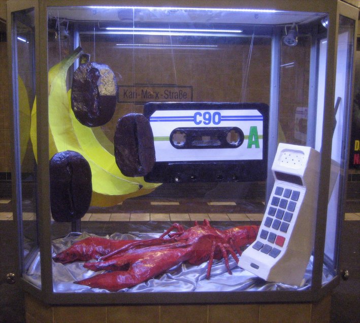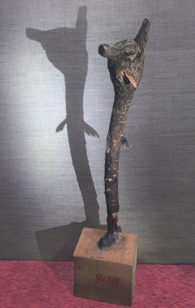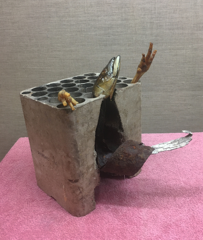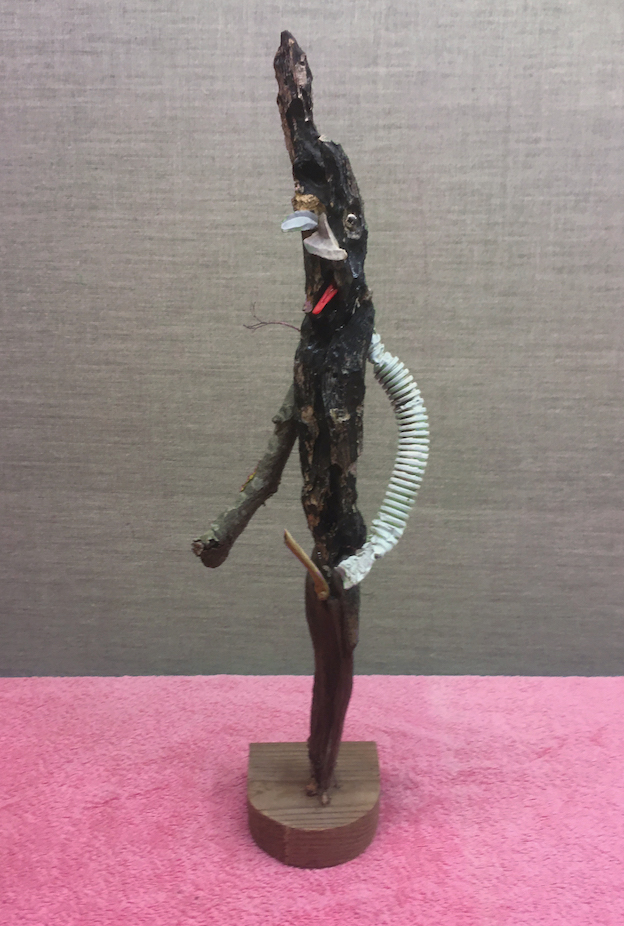 creature from hell 4, 2020, branch, stone, mackerel fins, pin heads, wax, netting, wood, glue, approx 45 cm tallcreature from hell 1, 2018, twigs, bark, animal bone, stones, rawl plug, screw, plastic pipe wood, glue, approx 35cm tallinstallation commission for sameheads in neukölln, berlin, 2019, mixed media, dimensions variabledesign for ream exhibition poster, 2019installation in karl-marx-str ubahn vitrine for die marktpläner, berlin, 2016, ink drawings on card, dimensions variable