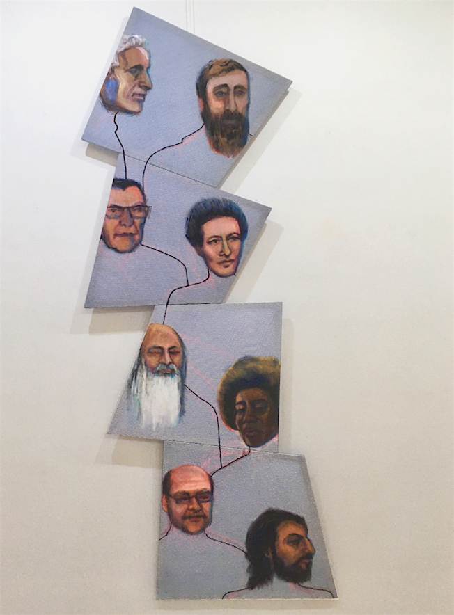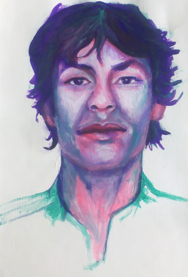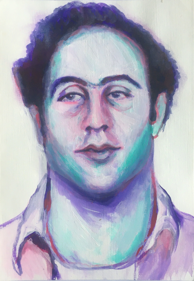 the four instars of holometabolism, 2019, acrylic, tempera & oil on canvas, 49 x 49 cmwimbledon line umpires, 2013, acrylic on canvas, varnished, 60 x 80 cm x 2 (diptych)rose west, 2011, goache & ink on coloured paper, 30 x 20 cmzidane, 2010, acrylic on board, 100 x 140cmrichard ramirez, 2011, goache & ink on textured paper, 30 x 20 cm