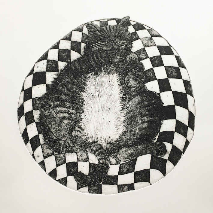 caster oil plant wilting in the heat, 2019, intaglio print, 38 x 30 cm, edition of 30a symmetry in time, 2018, intaglio print, edition of 7, 70 x 65 cmsleeping cat 3, 2019, intaglio print, edition of 10, 30 x 30 cmtwo women at a table, 2008, intaglio pint, edition of 10 35 x 28 cma part of the project, lost relatives, 1 of 100 portraits, 2008, intaglio print, 24 x 20 cma part of the project, lost relatives, 1 of 100 portraits, 2008, intaglio print, 24 x 20 cmiron, 2008, intaglio print, 36 x 28 cm, edition of 10