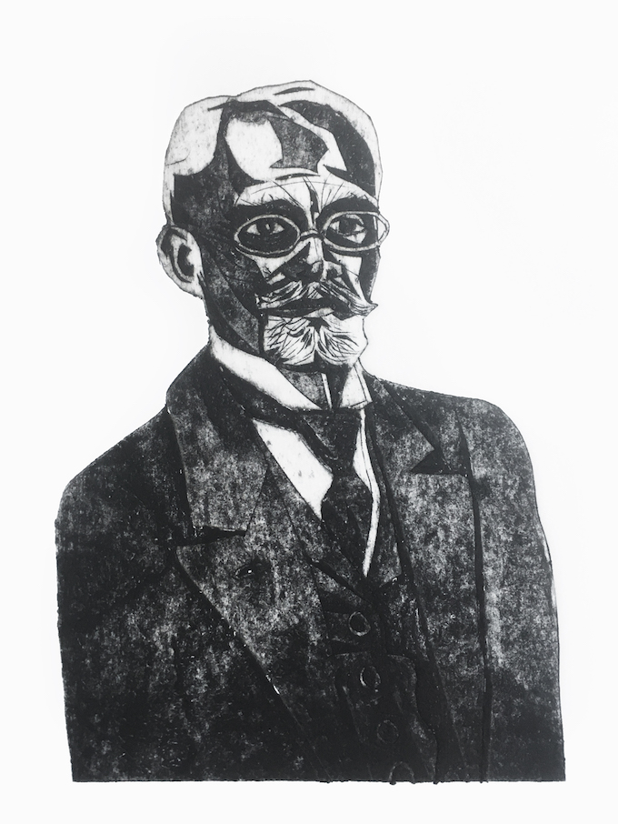 business demon 2019, intaglio print, edition of 10, 22 x 25 cmbrüsseler platz, (for the album, brüsseler platz by dominik von senger, back cover image) 2019, intaglio print, edition of 30, 30 x 30 cm, merle’s overlocker, 2019, intaglio print, edition of 10, 30 x 30 cmsleeping cat 2, 2019, intaglio print, edition of 10, 30 x 30 cmwomen sewing with dog, 2010, intaglio print, edition of 10, 50 x 70 cma part of the project, lost relatives, 1 of 100 portraits, 2008, intaglio print, 24 x 20 cma part of the project, lost relatives, 1 of 100 portraits, 2008, intaglio print, 24 x 20 cmclothing label, 2002, photo transfer etching, 20 x 25 cm